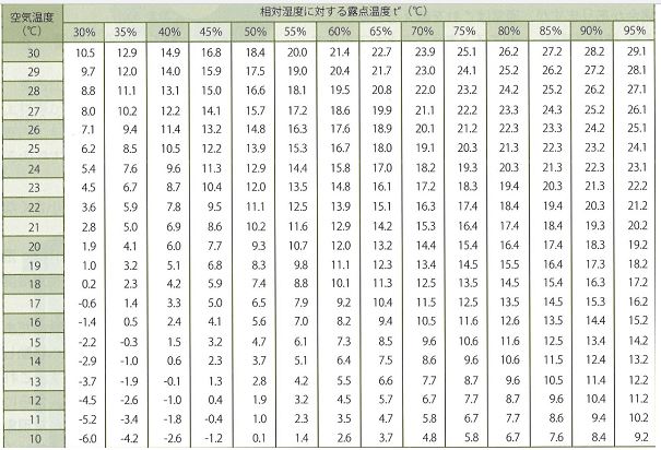 露点温度表